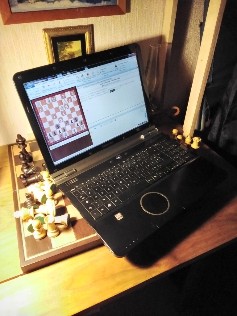 On dit qu’il faut être en phase avec la modernité. On se colle à son écran. On démarre son logiciel ou sa plateforme. On opère un diagramme schématique et plat. On sent dans sa main toujours la même forme arrondit de la souris ou biens on touche la même platitude de l’écran tactile. L’ensemble est si vilain, qu’on a du mal à le visionner pendant des heures que durent les parties sérieuses. Associé à l’hyperactivité générale, le manque de temps et l’impatience nous pousse à jouer vite. On se met à survoler les parties, la profondeur des calculs et la réflexion détaillée demande du temps. Et si la partie dure, on décroche et on se plein de la lenteur de la réflexion de l’adversaire. On perd le fil conducteur, le sens et la direction entrepris. C’est comme dans le TGV, les paysages défilent à la fenêtre, mais on ne les voit pas.